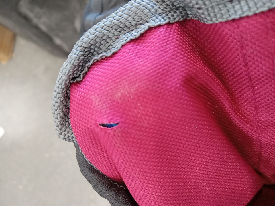 Their is small cut on the material of this chair as well as some light dirt scuffs on the legs, this seems to be due to shipping and handling. see photos below.
