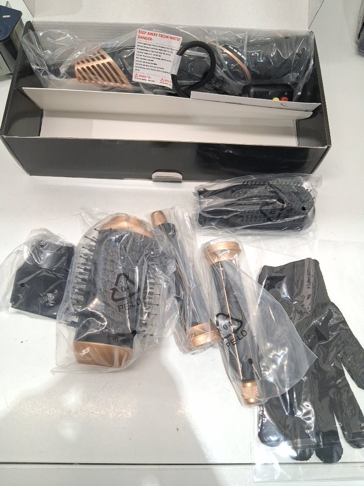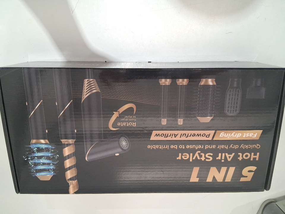 5in1 Hair Air Styler with Auto Curling Wands Multi-use Hair Blow Dryer Brush Set - BLACK/GOLd