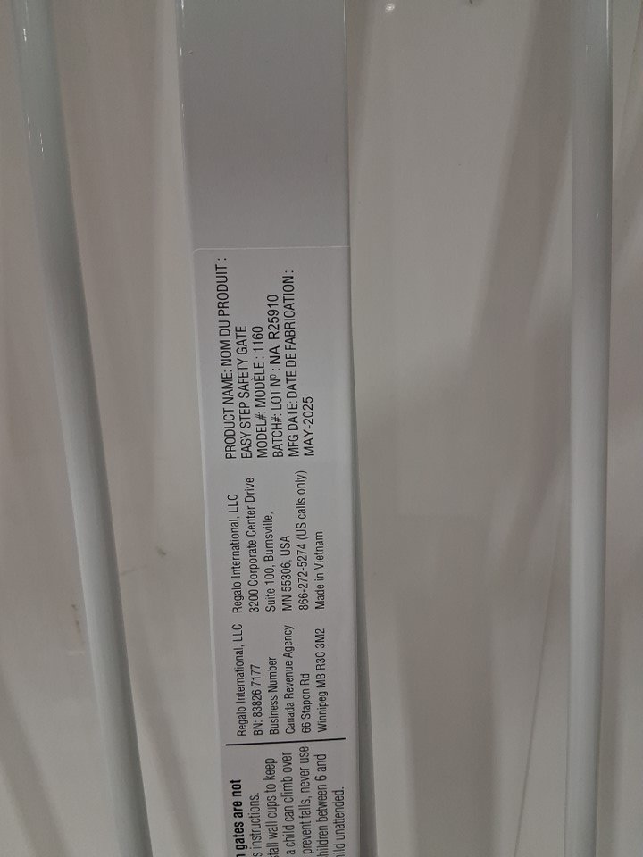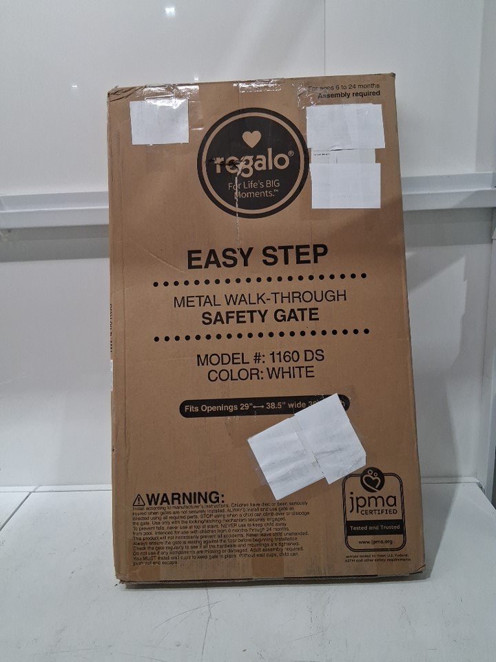 REGALO EASY-STEP METAL WALK-THROUGH SAFETY GATE - 30" X 29'' to 38.5'' - WHITE (MODEL: 1160DS)