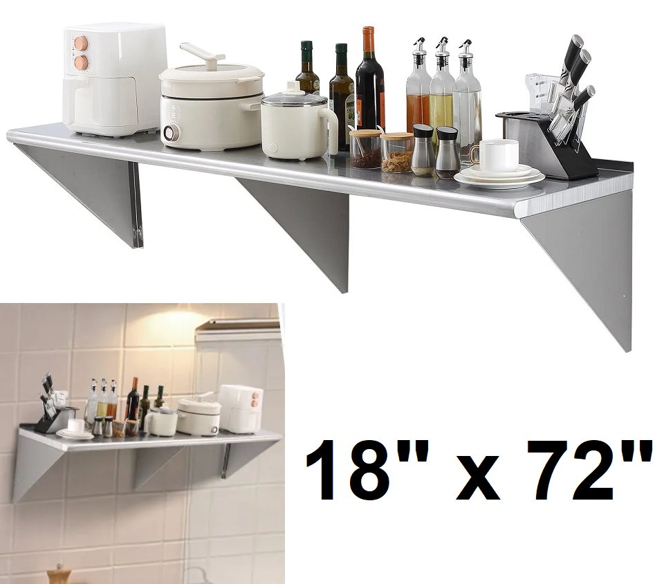 vevor Stainless Steel wall mounted floating shelf - 18" x 72" - silver (model:wmd1872)