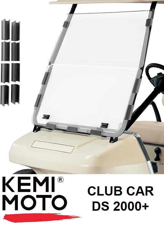 KEMI MOTO Foldable Golf Cart Windshield for Club Car DS 2000+ - Clear (Model: B0110-15602-CL)