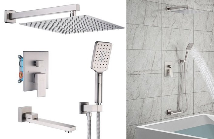 CASAINC 3 Function Wall Mount Complete Rainfall Shower System with 3 Setting Handheld and Tub Spout - brushed nickel (model: W98103BN-10)