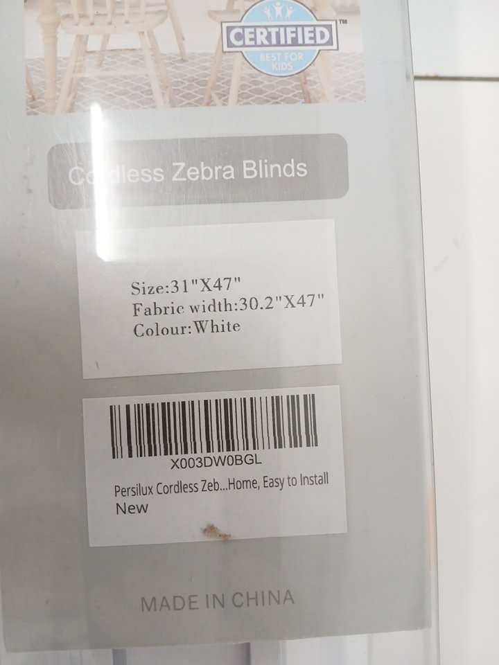 Persilux Cordless Zebra blinds - 31" x 47" - white