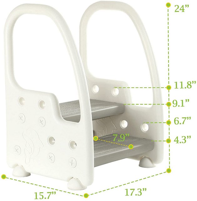 MANGOHOOD KIDS STANDING LEARNING TOWER TWO-STEP FOOTSTOOL WITH HANDLES - NON-SLIP SAFETY FOR TODDLERS - GREY/DOLPHIN DESIGN (MODEL: ‎MH-FSJTD-0-GRAY)