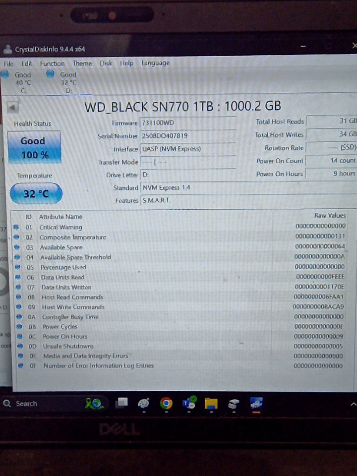 The drive has been powered on 14 times for a total of 9 hours. (SEE PHOTOS)