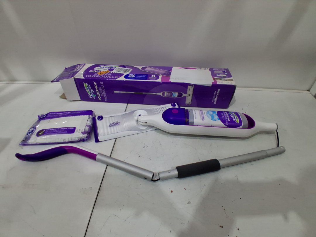 Swiffer PowerMop Multi-Surface Mop with mopping pads and cleaning solution - purple/white