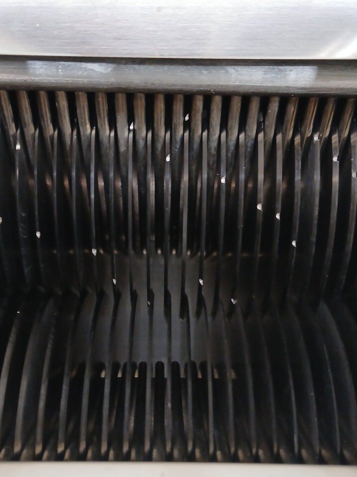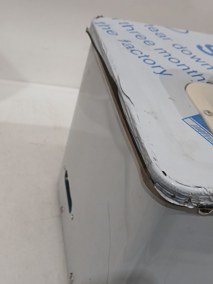 Has some minor scuffing and scratches on the surface and the protective cover is peeling off. Has some residue in the chute from use. Tested for power.