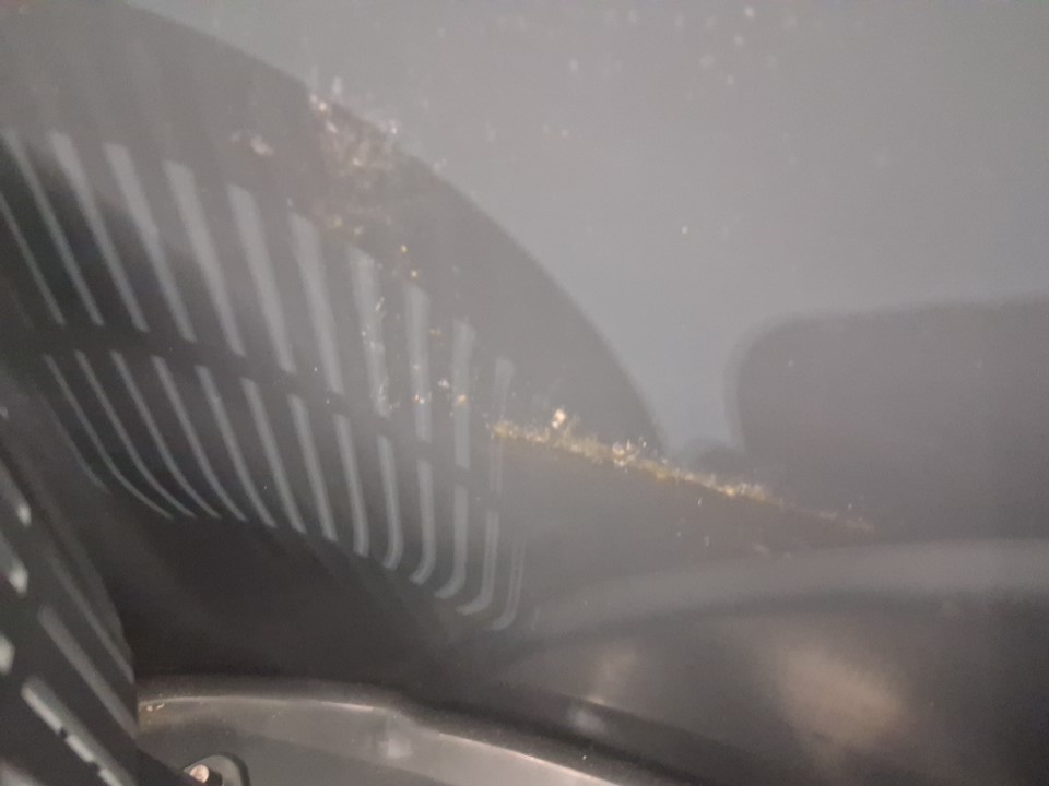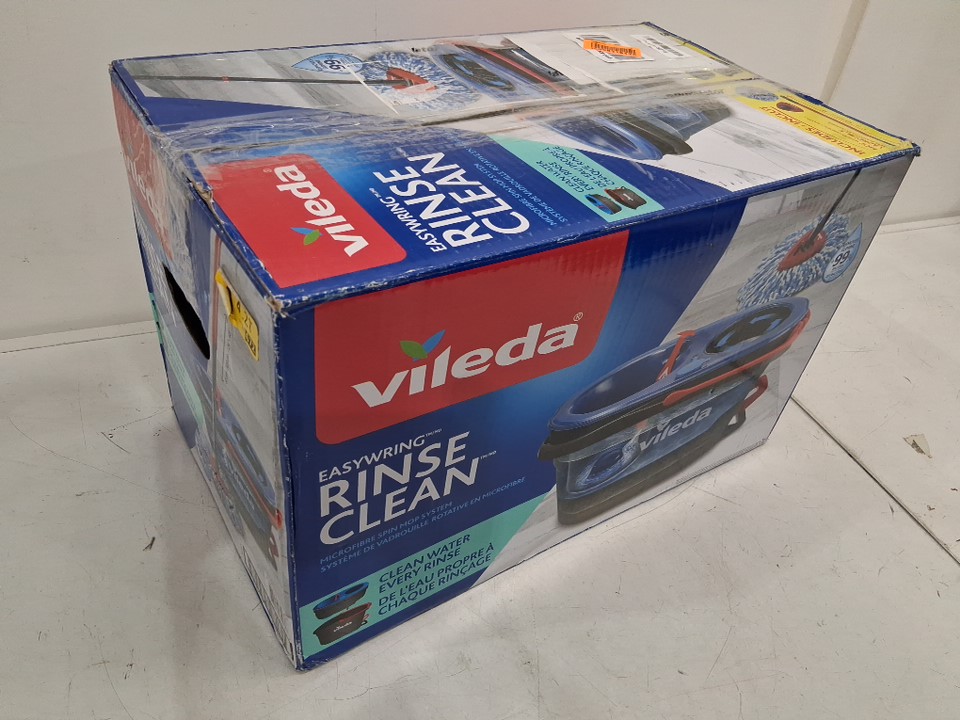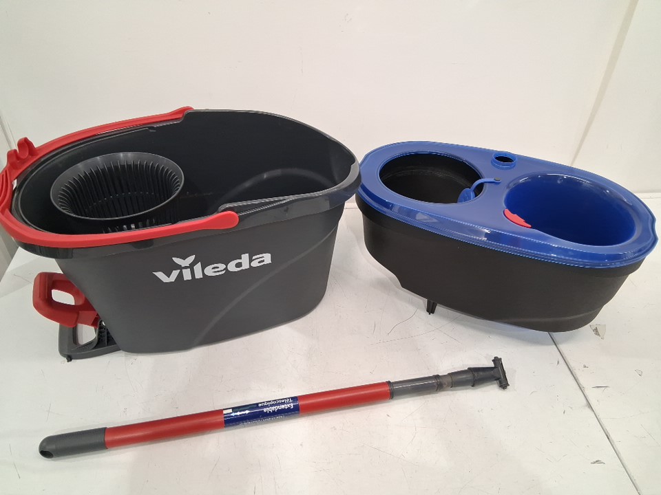 Water and dust residue on extendable pole and inside tank. Missing mop head. (See photos)