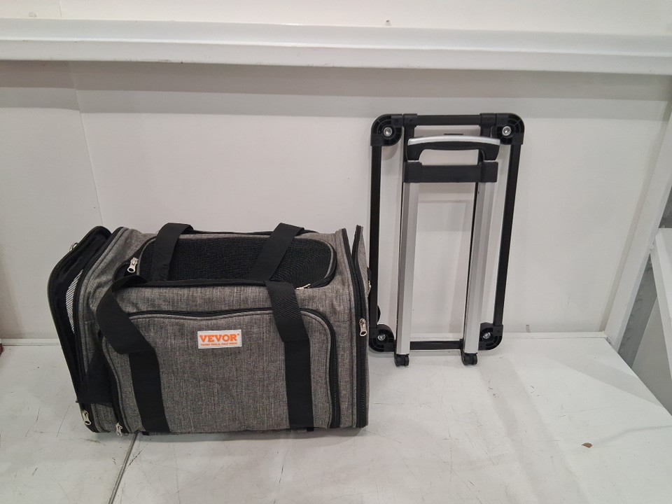 VEVOR Cat Carrier with Wheels Airline Approved - 22lbs cap - grey