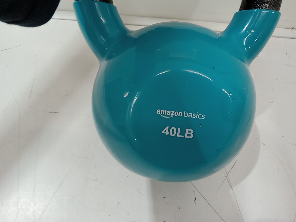 AMAZONBASICS VINYL COATED KETTLEBELL WEIGHT - 40lbs - TEAL BLUE