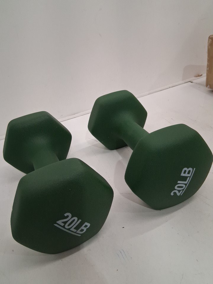 2PK AMAZONBASICS HAND WEIGHT DUMBBELLS - 20LBS EACH - dark GREEN