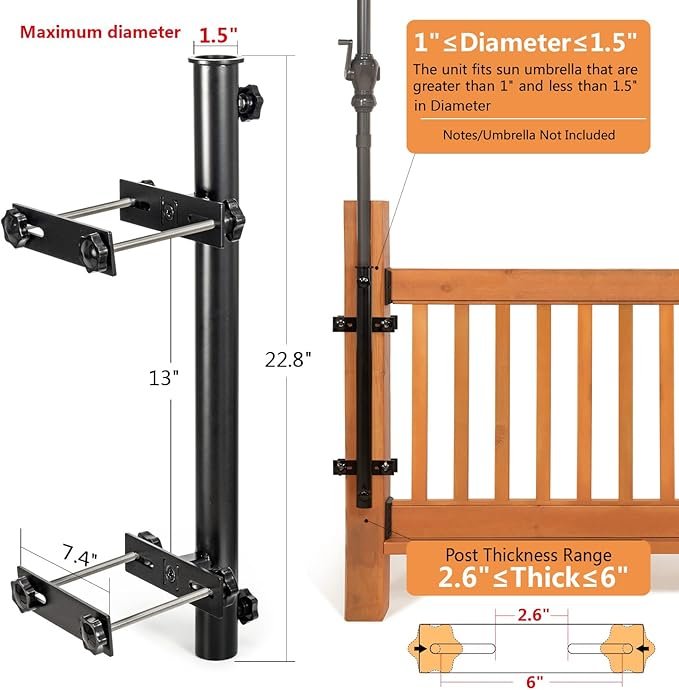 Walrkaur stainless steel Patio Umbrella Holder - black (model: ‎WKLZ-B)
