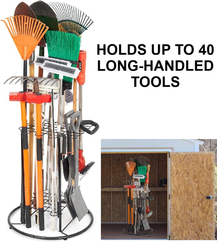 Kingarage Heavy Duty Steel Tool Storage Rack - Holds Up to 40 Long-Handled Tools - Black (Model: KG005)
