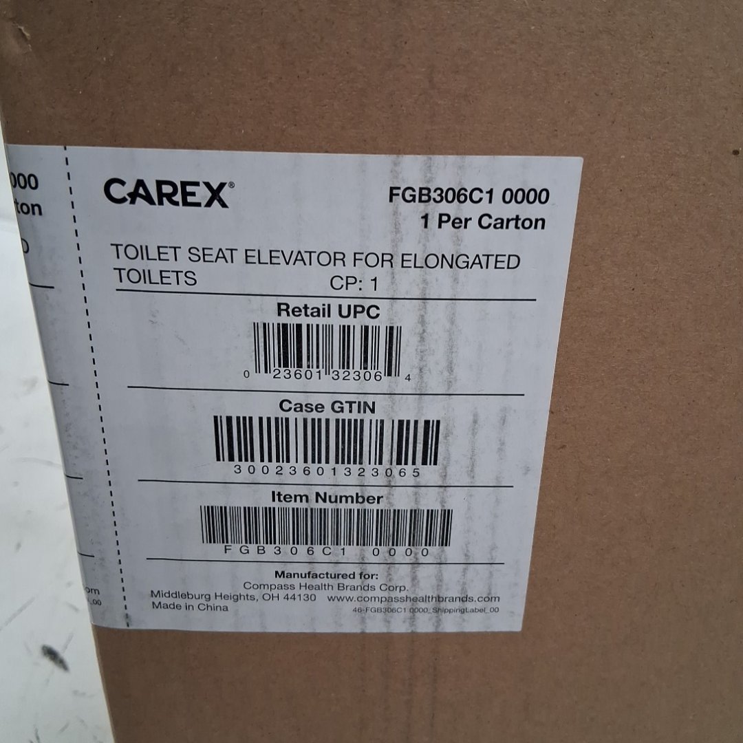 Compass health CAREX ELONGATED TOILET SEAT ELEVATOR - 3.5" - 300LBS Cap - white (model: FGB306)