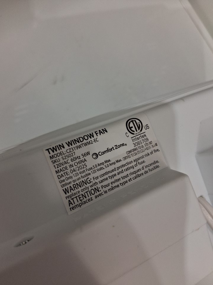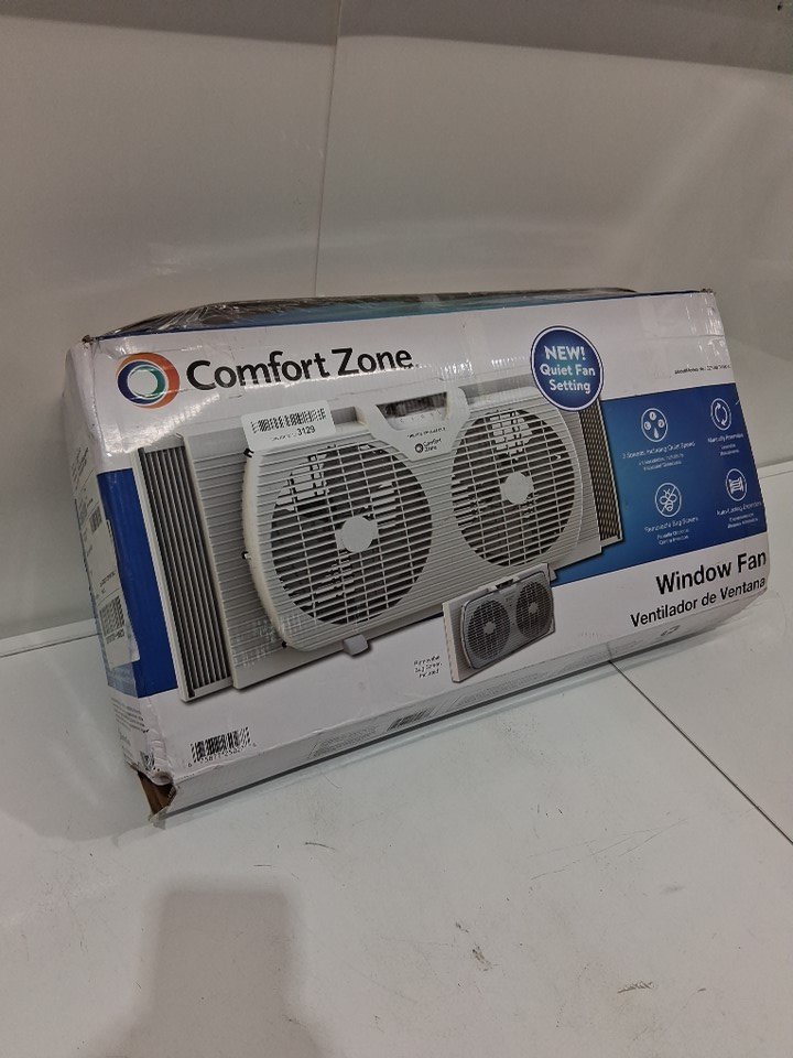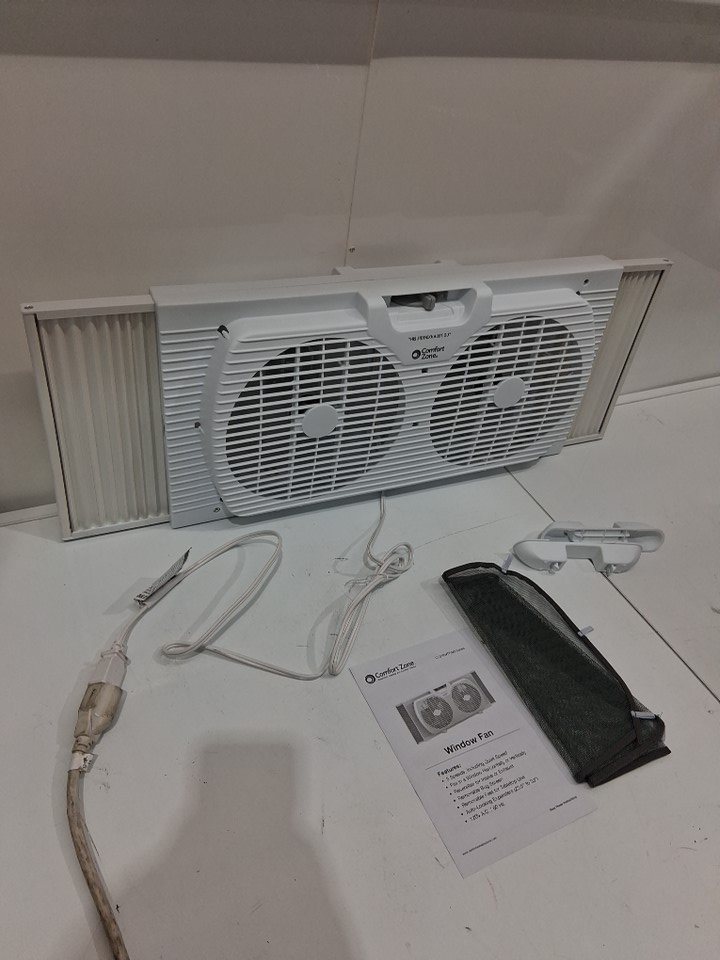 Comfort Zone Twin Window Fan Auto-Locking Expanders with Quiet Setting - 22" x 11" - white - (Model: cz319wtwm2-ec)