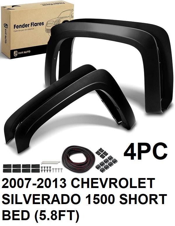 4PC YHTAUTO Fender flares with hardware kit - 2007-2013 Chevrolet Silverado 1500 SHORT BED ONLY (5.8FT) - Black