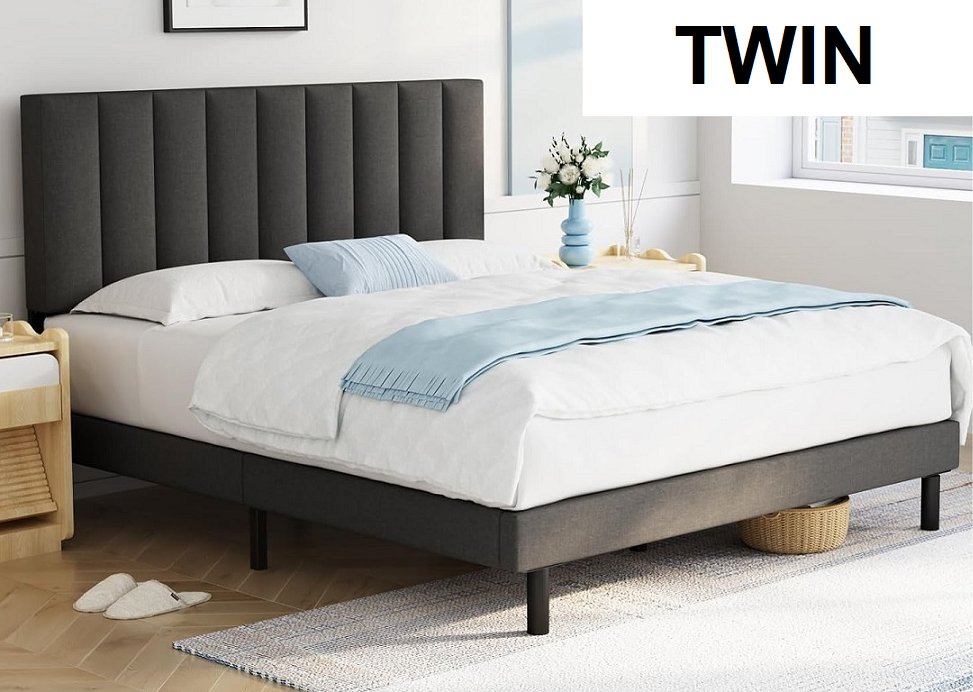 Molblly Upholstered PLATFORM bed with headboard - FULL - dark grey (model: 6903)