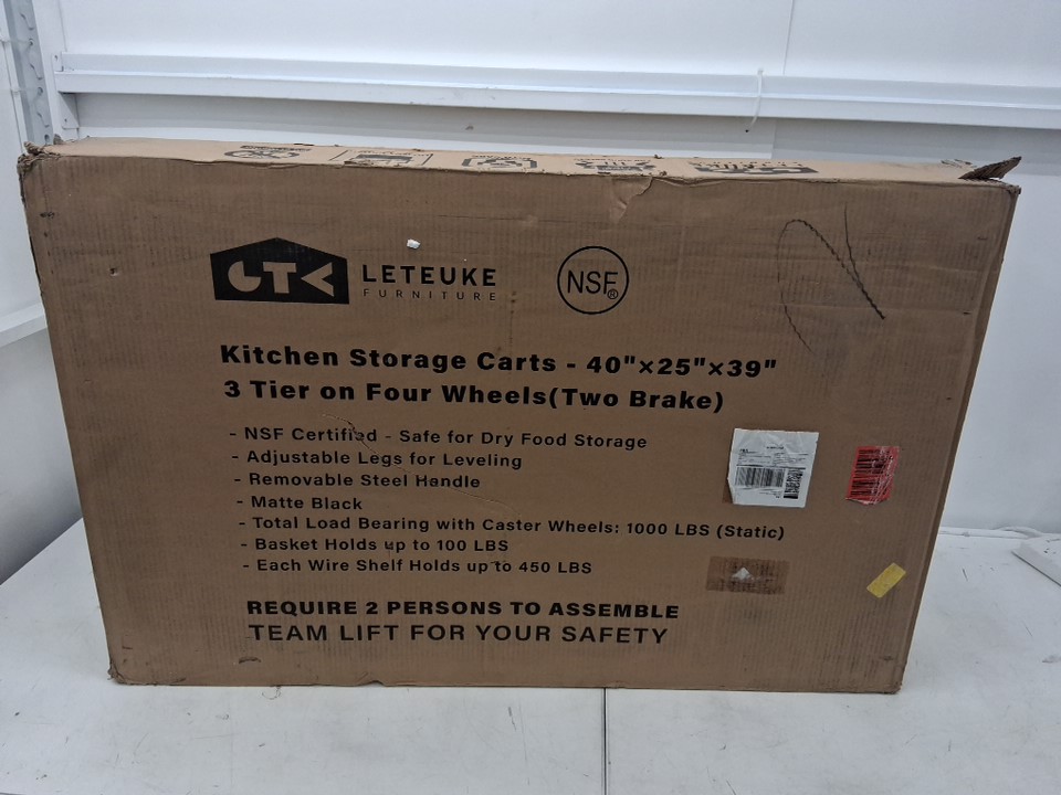 leteuke heavy duty 3 tier rolling metal cart with adjustable shelves - 40" x 25" x 39", 1120LBS max load - black - (model: 180-SC-BLK)