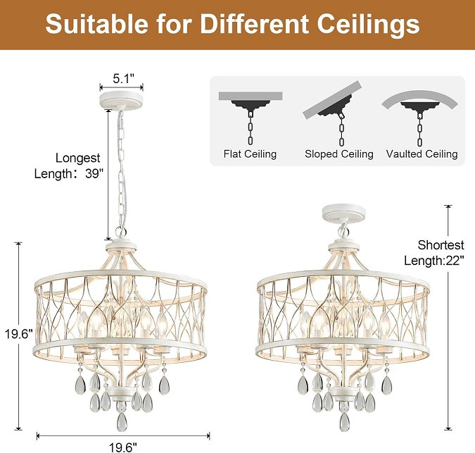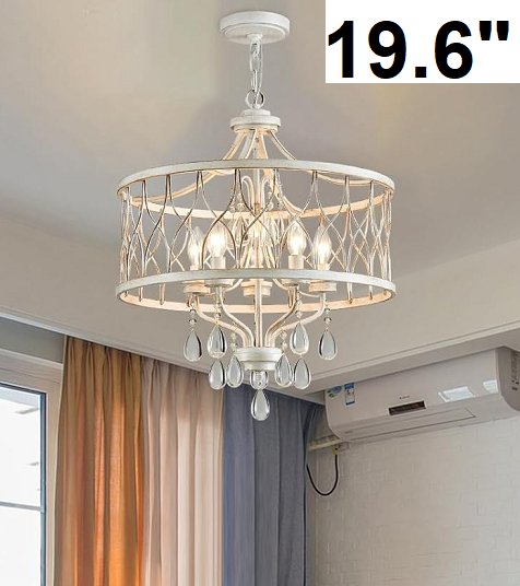 uiimeces modern vintage farmhouse crystal chandelier with 5 lights - 19.6" - white (model: ‎JD-P0001W)