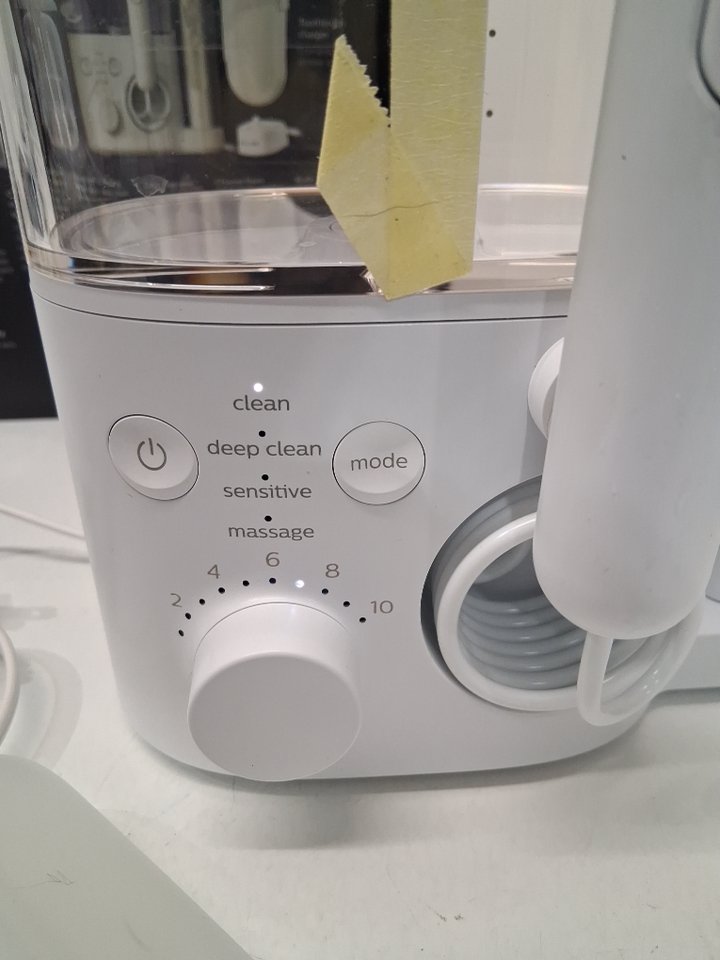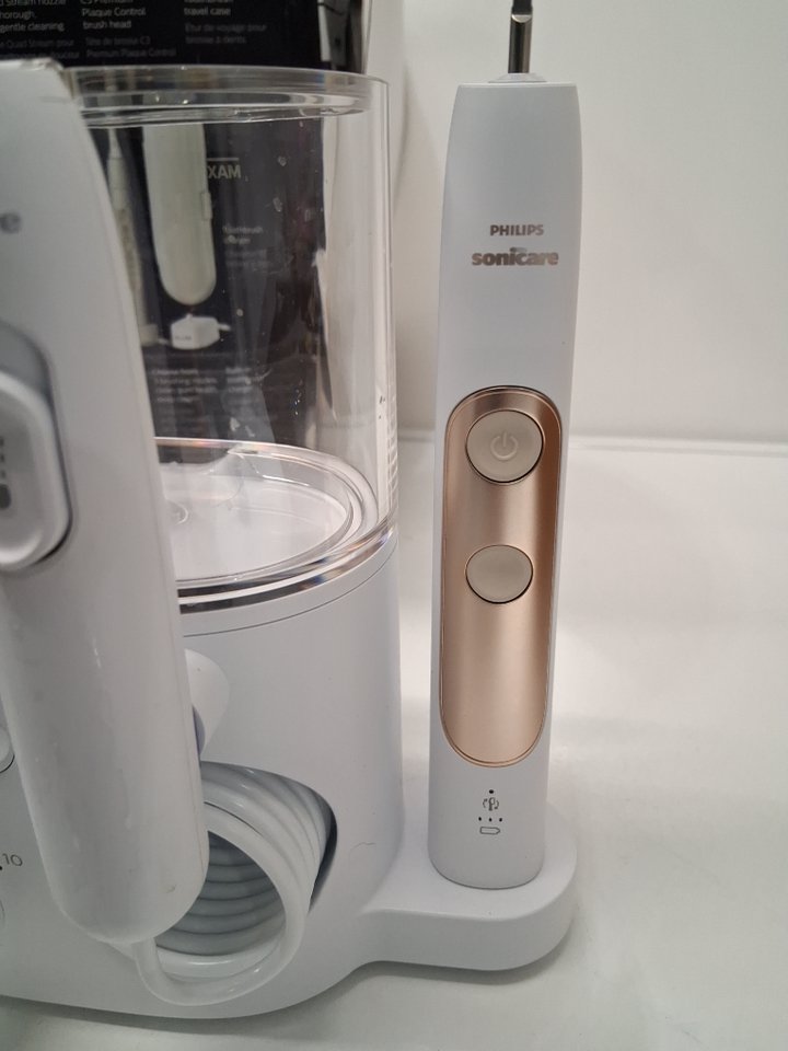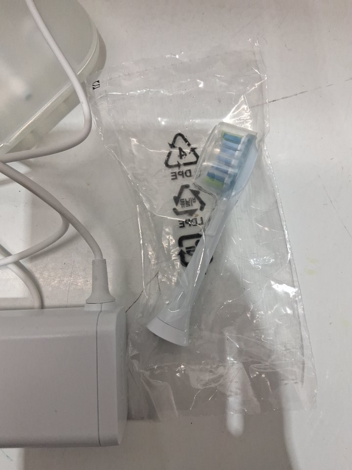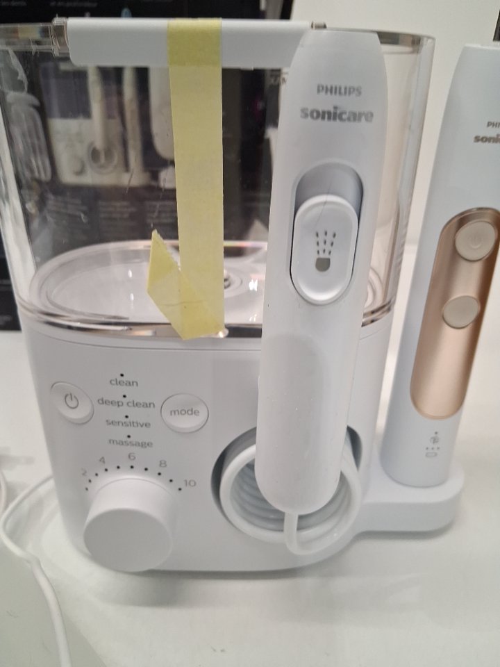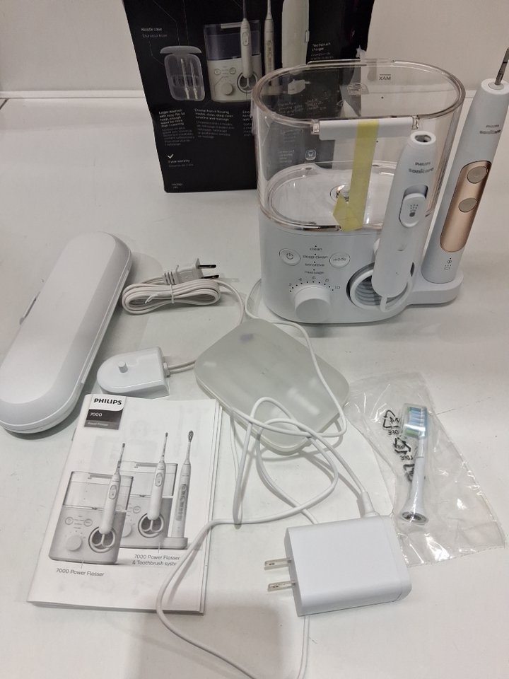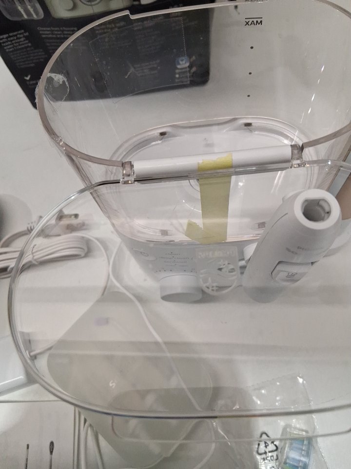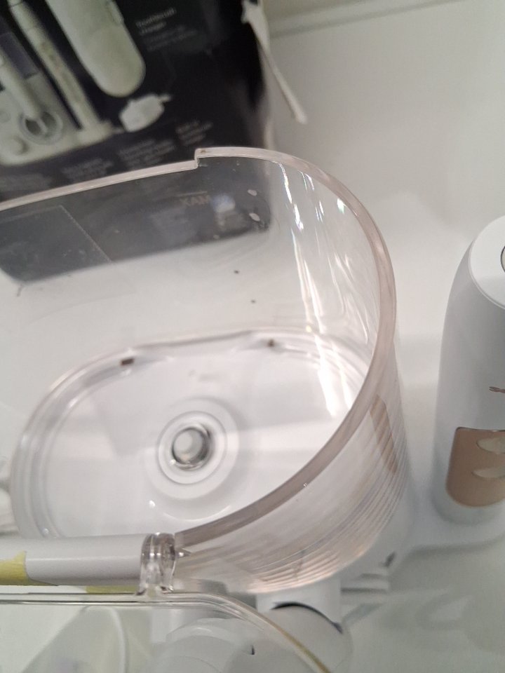 Has water drops in flosser brush head included is still sealed. Please refer to photos.
