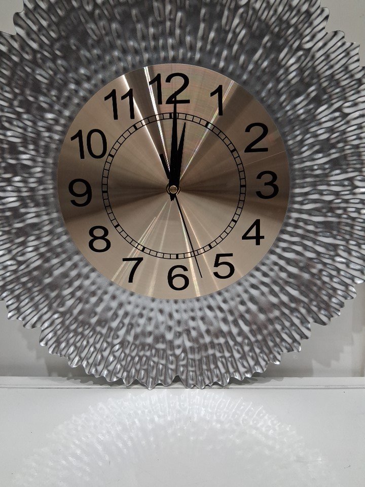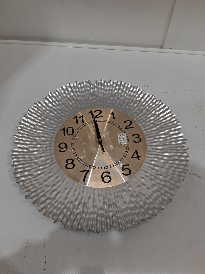 SUKYING indoor / outdoor sunflower hammered metal modern round decorative analog clock - 15" round - silver / gold