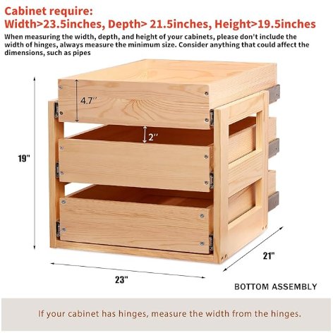 mulush - 3-tier pull out soft close cabinet organizer- bottom assembly, 23''W×21''D×19''H - oil rubbed pine (model: mu-3t-23-ca)