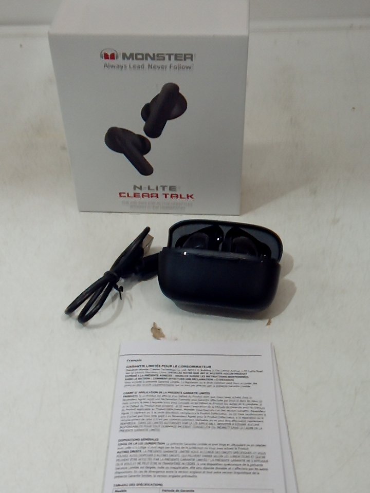 Monster N-Lite Clear Talk Bluetooth Wireless Earbuds - CVC 8.0 Noise Reduction, IPX8 Waterproof - Silver Grey (model: mh22107)