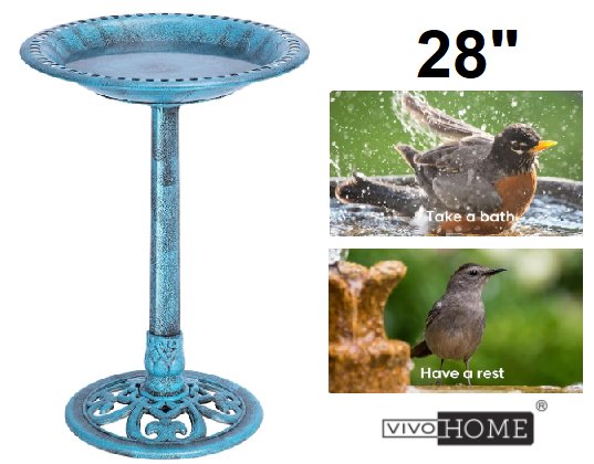 VIVOHOME Polyresin Lightweight Antique Outdoor Garden Bird Bath - blue (model: vh082-bl)