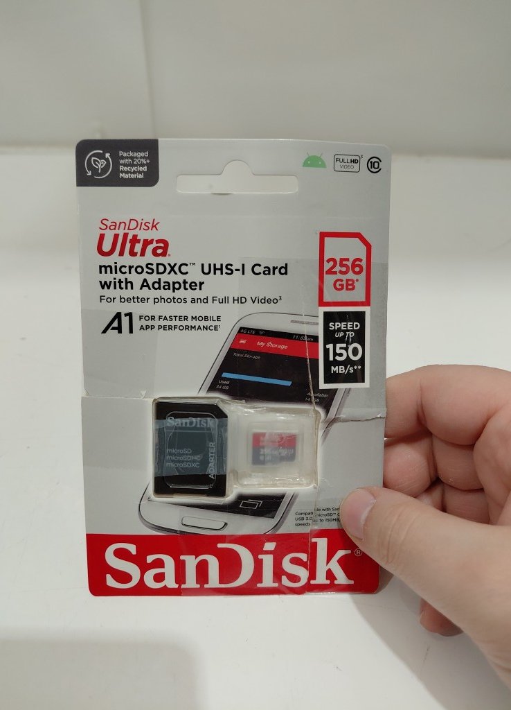 SanDisk 256GB Ultra MicroSDXC UHS-I Memory Card with adapter - 150MB/S, C10, U1, Full HD, A1, Micro SD Card (MODEL: SDSQUAc-256G-GN6Ma)
