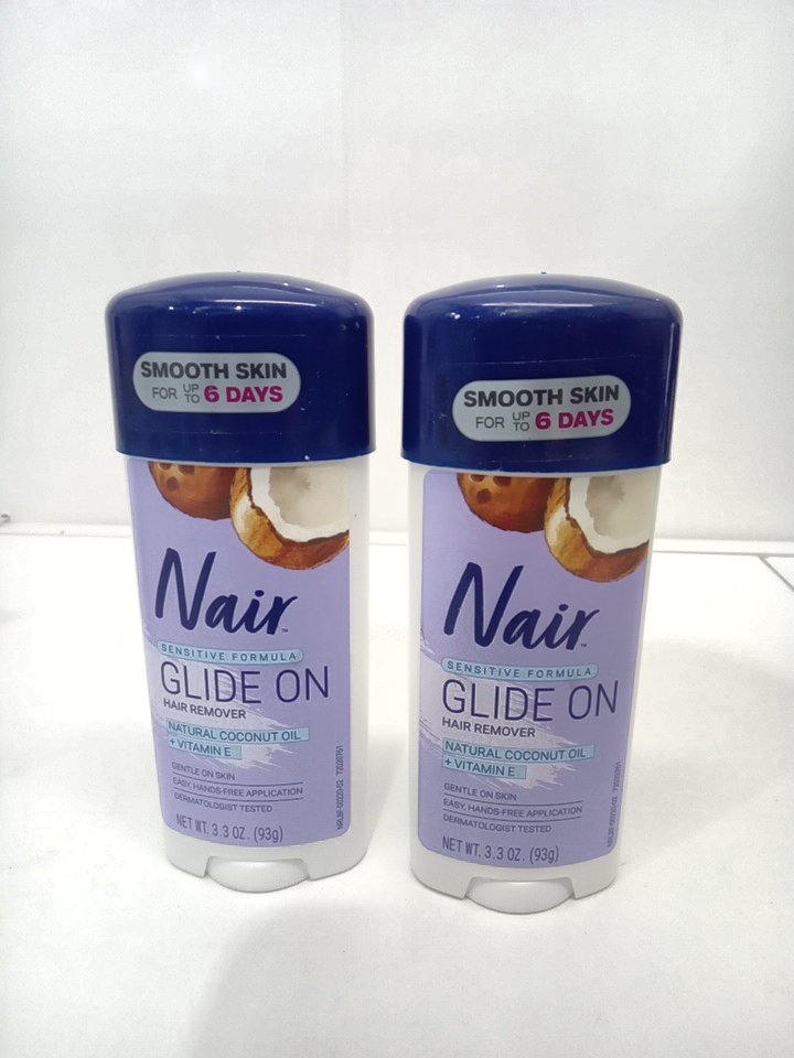 2 nair glide on sensitive formula hair remover - natural coconut oil + vitamin e - 93g/each