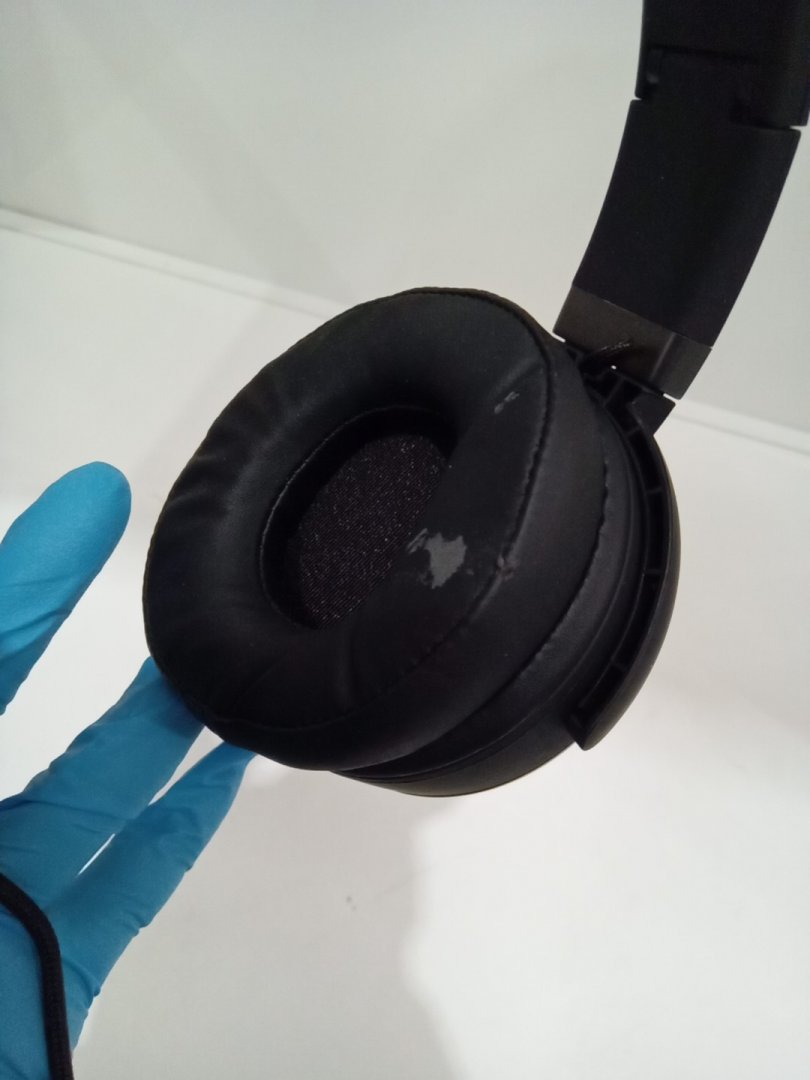 There is a small tear on the leather of the right ear cushion but otherwise appears new.