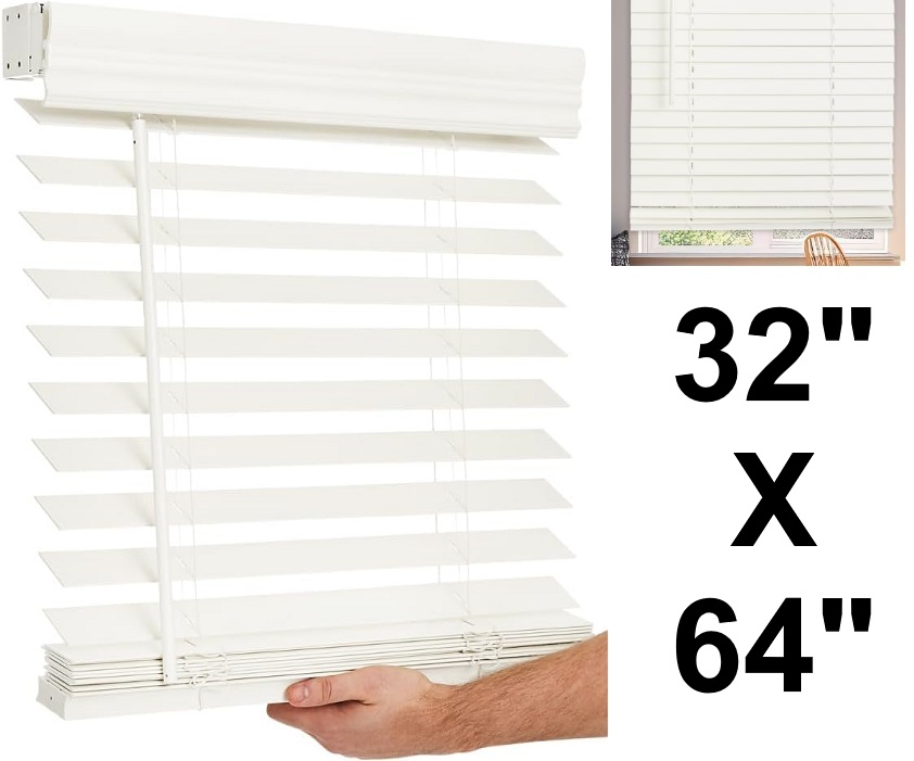 lotus and windoware FAUX WOOD BLIND- EMBOSSED finish - 48" x 36" x 2" - BRIGHT WHITE