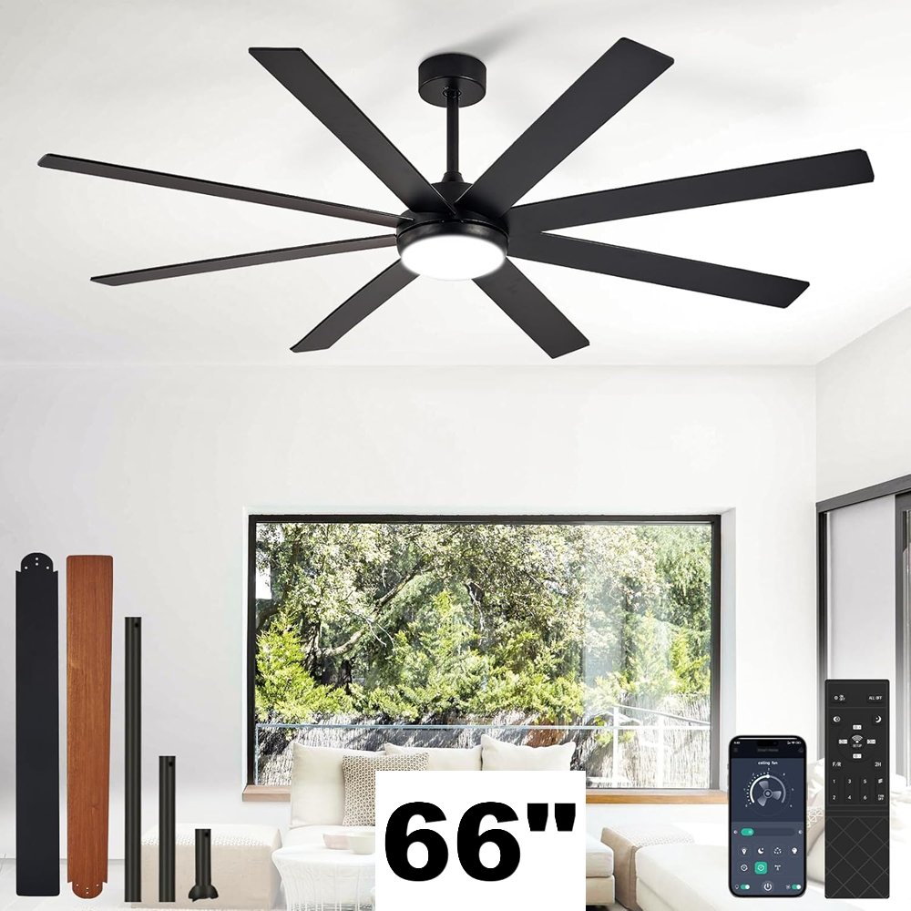 Depuley 8 blade 6 speed energy saving dimmable app compatible Ceiling fan and light - 66"- 3000K-6500K - Black - (Model: WS-FPZ197-66C-BK)