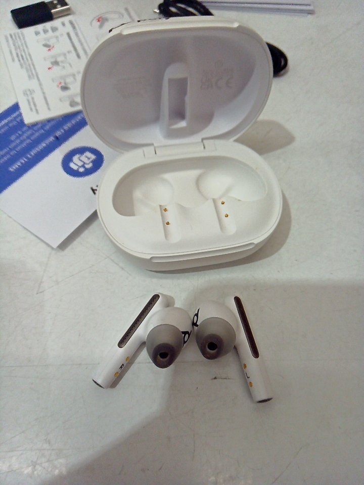 There are very faint markings/traces of dust on the earphones. Tested for power and sound through Bluetooth connection. (SEE PHOTOS)