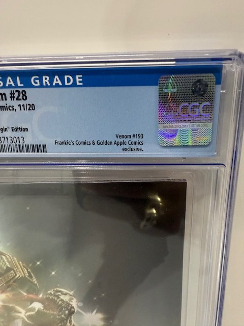 CGC GRADED 9.8 WHITE PAGES VENOM #28 FRANKIES COMICS GOLDEN APPLE EXCLUSIVE NGU VIRGIN COMIC