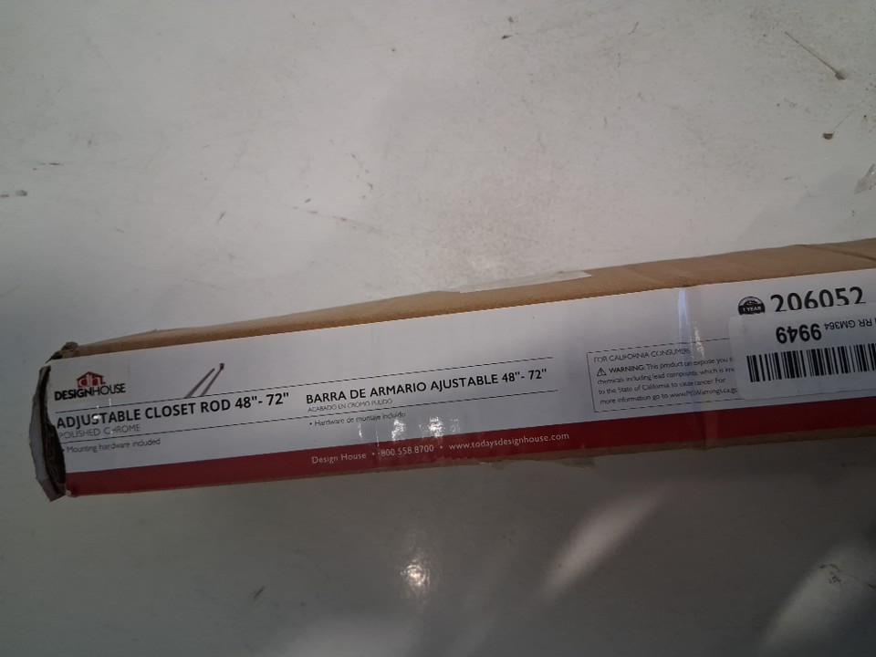 Design House Adjustable Closet Rod - 48"-72" - chrome finish - (MODEL:206052)