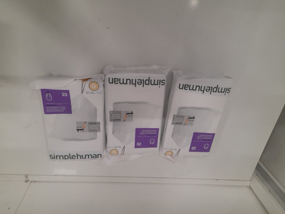 3 (20PK) simplehuman custom fit drawstring trash bags - 50l to 65l - white *60 BAGS TOTAL*