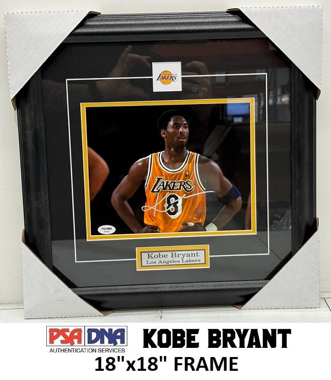 SIGNED KOBE BRYANT LAKERS FRAMED 8"X10" PHOTO IN 18"X18" FRAME WITH COA HOLOGRAM FROM PSA/DNA