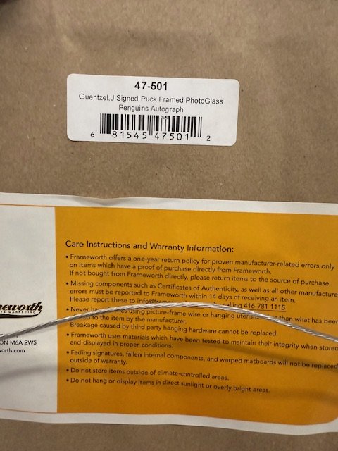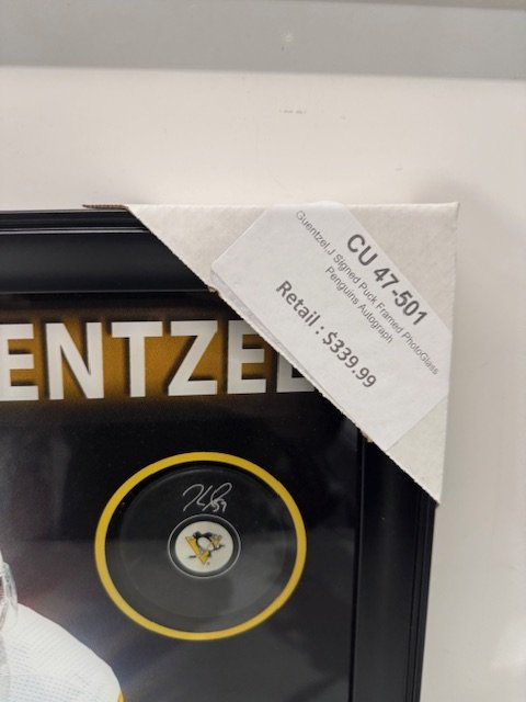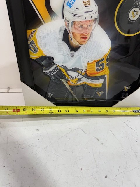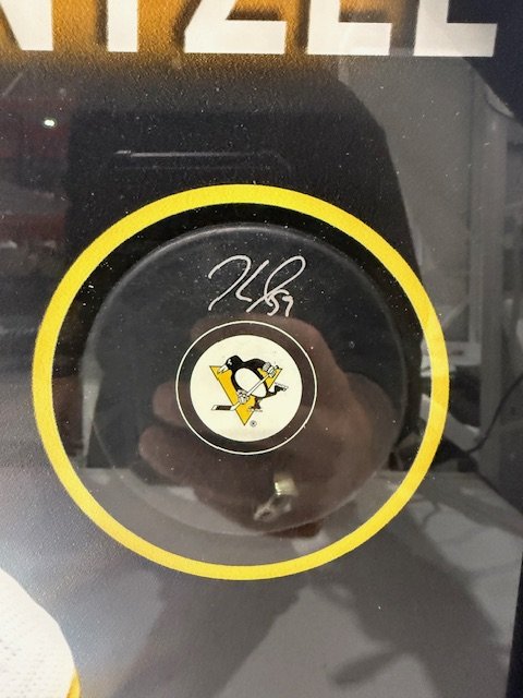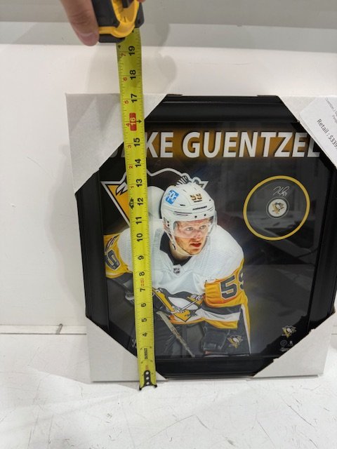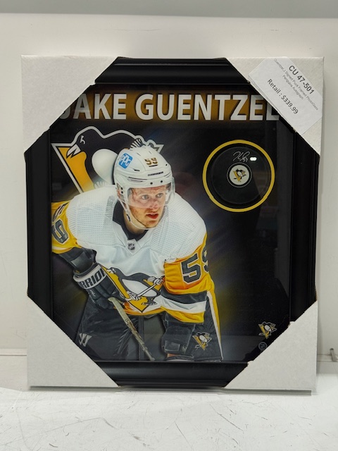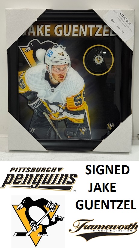 SIGNED JAKE GUENTZEL PUCK FRAMED NHL PITTSBURG PENGUINS COA FROM FRAMESWORTH 17"X15"