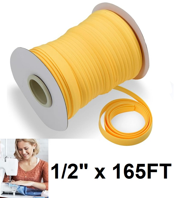 Tewadoo Bias Tape Double Fold for sewing, quilt binding fabric - 1/2" x 165ft - yellow