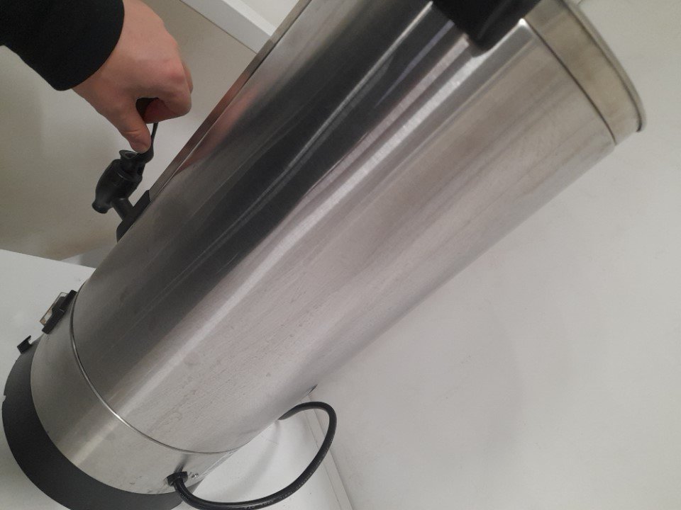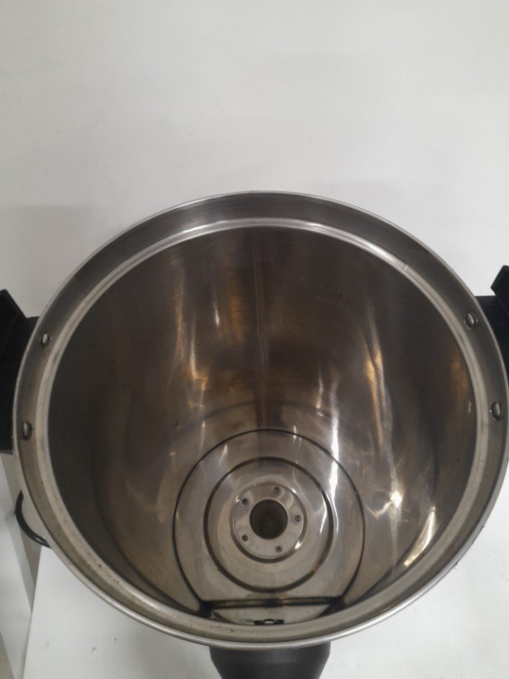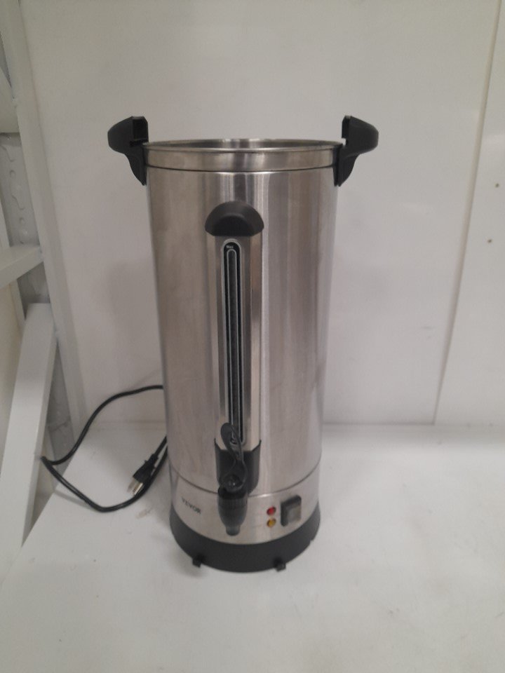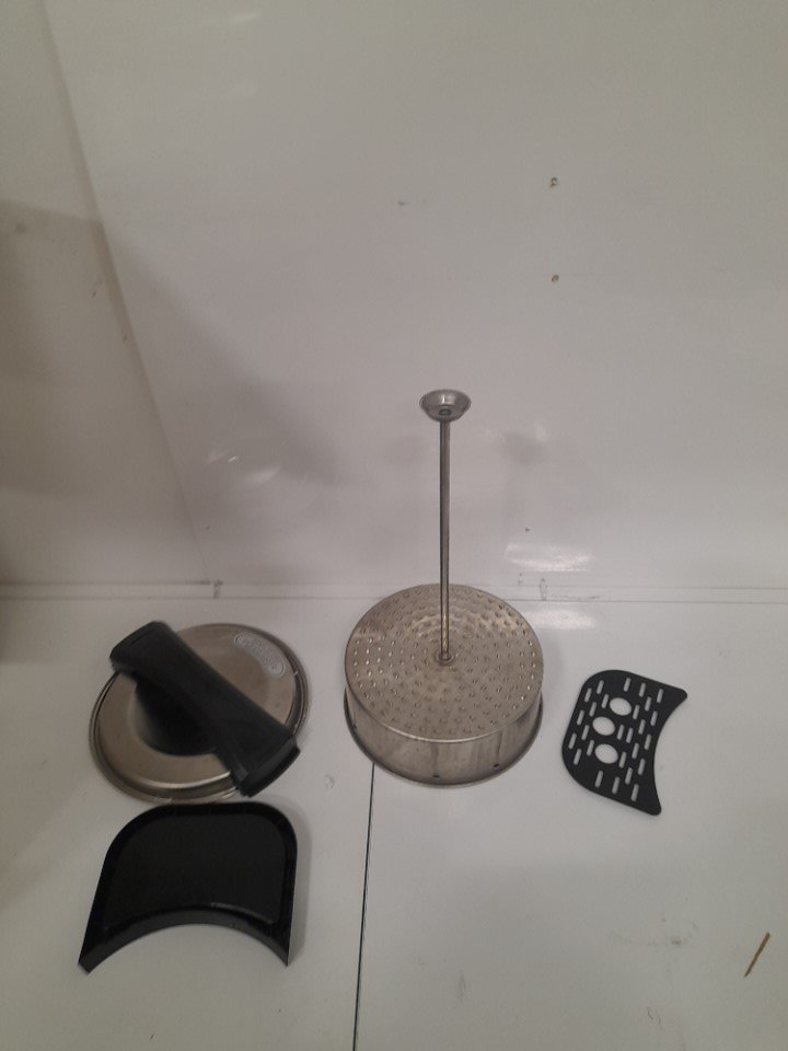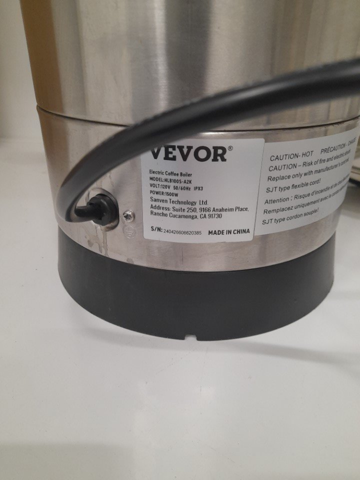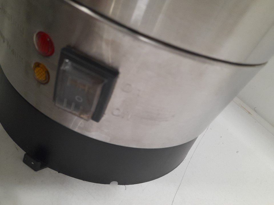 This item has coffee residue present throughout and has some water staining. The item still heats up and is fine, we couldn't get a photo of the indicator light due to it tripping the heat safety sensor.