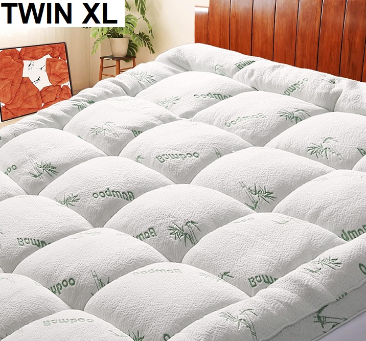 bamboo Cooling Extra Thick Breathable Mattress topper - Twin Xl - white