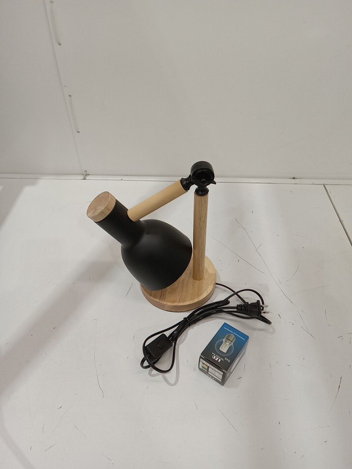 himmel Adjustable Wooden Table Lamp - 5.9" x 5.9" x 17.7" - 3000k - black/beige