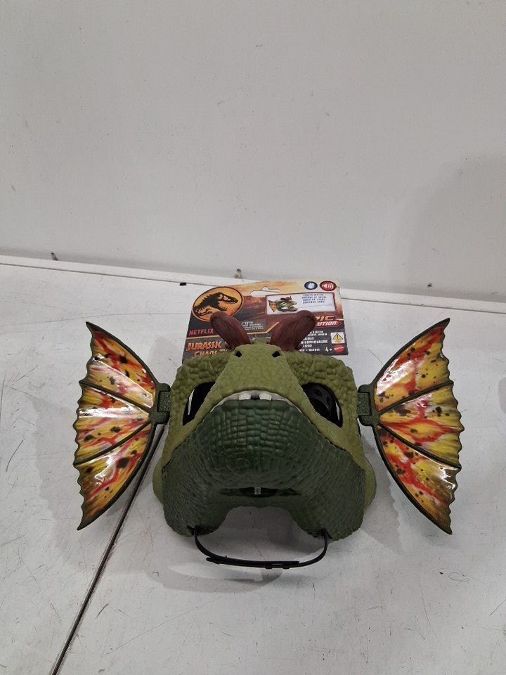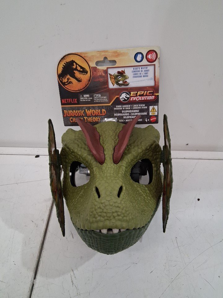 Mattel Jurassic World Dilophosaurus Role Play Mask with Venom Launchin Water Feature, Sound & Adjustable Frill - OSFM - green (model: hxf55)