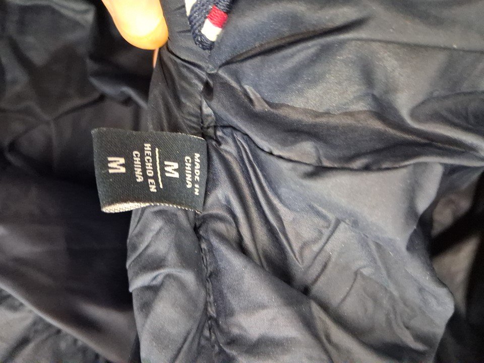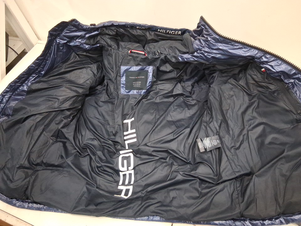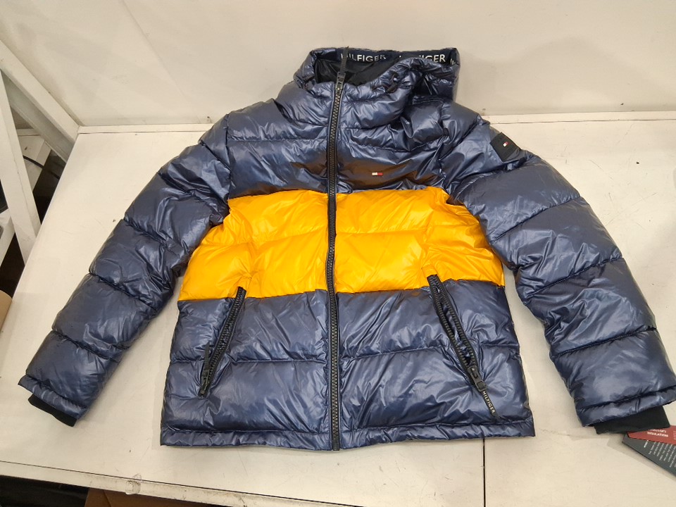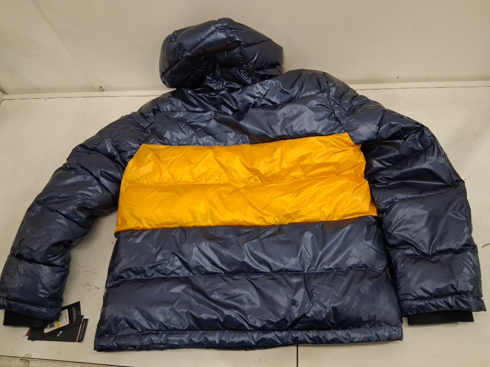 men's tommy Hilfiger hooded puffer jacket - medium - Pearlized Navy/Yellow (style: 159an823)