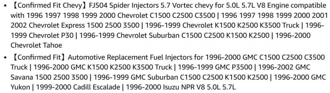 LOREADA 8 Cylinder Spider Fuel Injector - Fit for Chevrolet GMC Pickup Truck (MODEL:FJ504 )