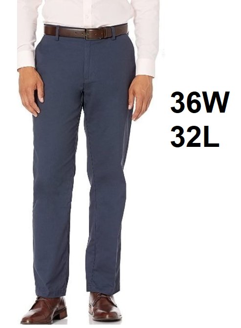 MEN'S AMAZON ESSENTIALS SLIM FIT FLAT FRONT CHINO PANTS - 36W x 32L - NAVY BLUE
