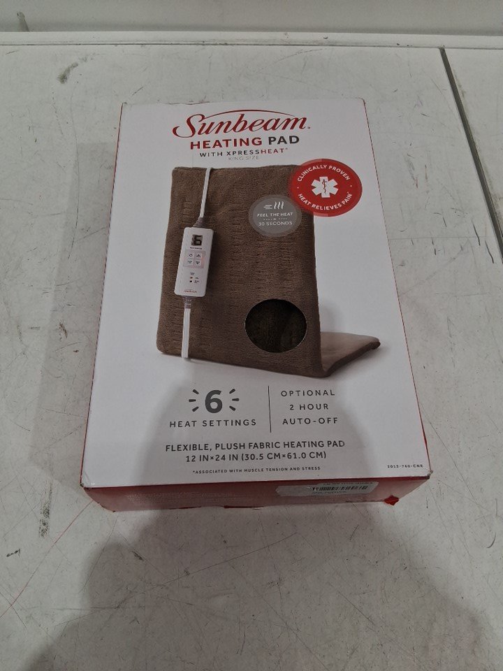 Sunbeam premium plush 4-setting king size heating pad - 12" X 24" - beige (model: 538-750-cnr)