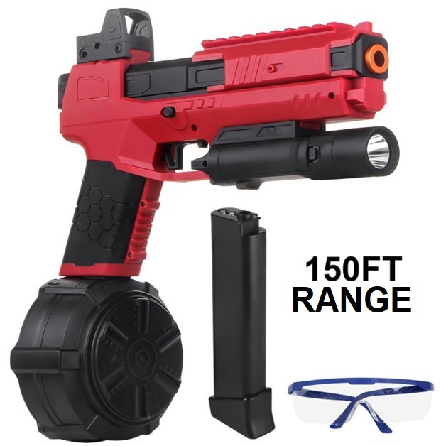 Gel Ball Blaster X6 with Drum, Manual & Automatic Dual Mode - 150FT Range - red (model: x6-red)