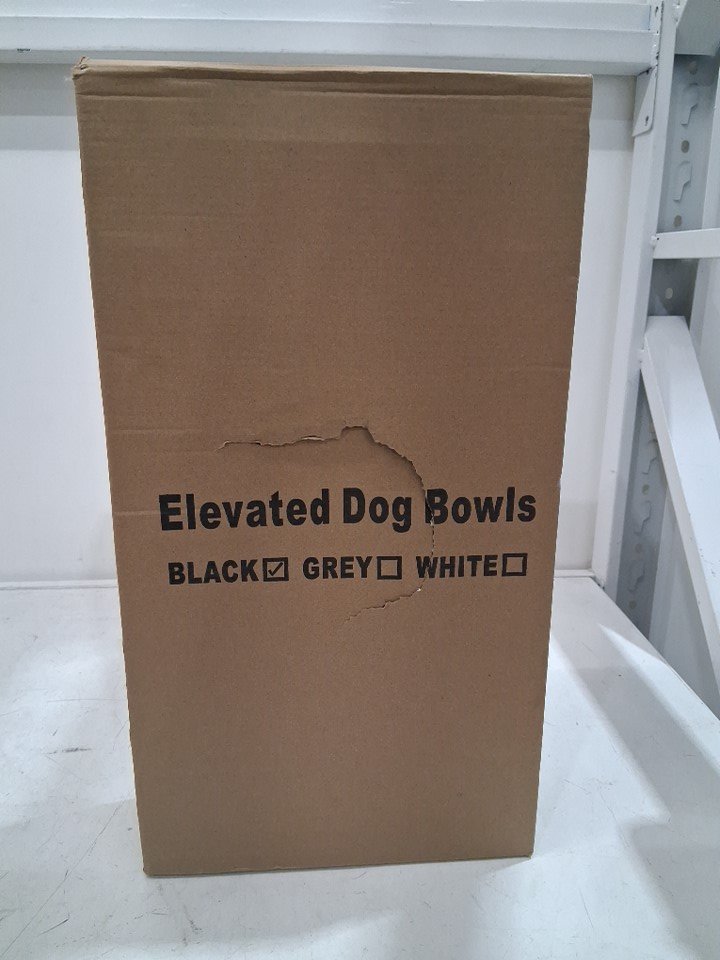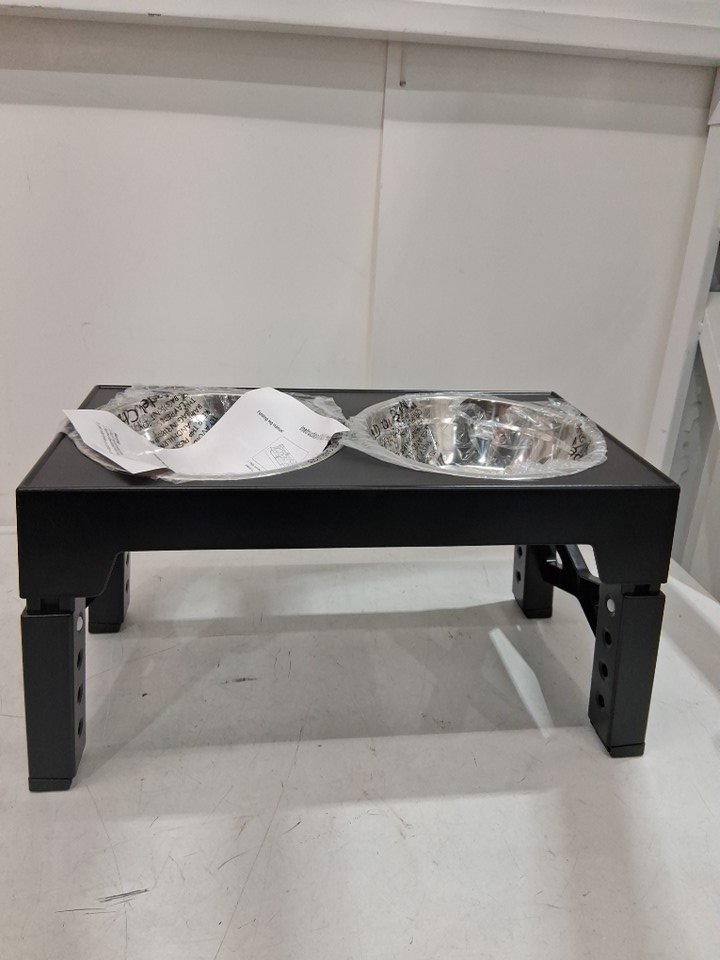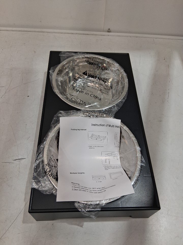 NUKied ELEVATED STAINLESS STEEL DOG BOWLS WITH 5 ADJUSTABLE HEIGHTS - 3.2" -12.2"- BLACK SILVER-(model: 0410)